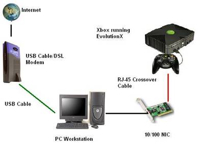 3. If, however, you are using ICS or Winroute on your main PC, you already have a DHCP server, and it really isn't necessary to load the EvolutionX dashboard onto your Xbox HD. So in this case, the IP assigned to the Xbox by the DHCP server (on your computer) will be done automatically each time the Xbox is turned on. In other words, the Xbox will be assigned a dynamic IP, which will be different each time the Xbox is turned on. The only way to have a static IP on the Xbox is to follow step 2.