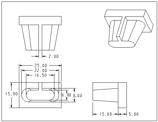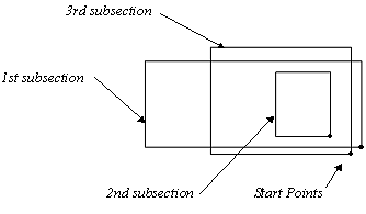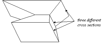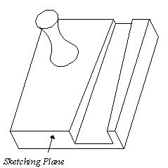 The sections of a parallel blended feature are created in one sketching session, regardless of the number of cross sections. The minimum number of sections is two. Figure 4-2 shows the three sections used to create the blended protrusion in Figure 4-1.