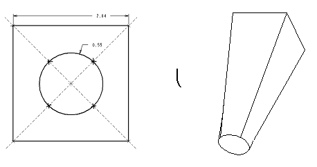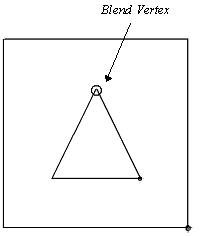 If the design intent calls for unequal numbers of vertices per section, the Blend Vertex option in the ADV GEOMETRY menu can be used. Figure 4-5 shows a square section being blended with a triangular section. A Blend Vertex is placed on a vertex of the triangle. This allows the extra surface created from the square to blend into this point.
