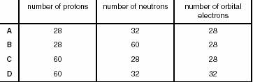 one of the isotopes of nickel is represented by 60 28 Ni. Which line in the table correctly describes a