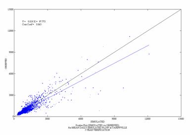 The basic calibration approach was comparison of the model's output to an historical data set with respect to the key variable, urban areal extent. The Pearson product-moment correlation coefficient (r2) was used as a measure of fit between quantitative and spatial measures. The model's form of implementation evolved through two distinct calibration phases: a visual version which was most useful for broad parameter definition and debugging, and a faster, batch version of the model which was more efficient for generating the large quantity of runs necessary for calibration. The program computes and saves descriptive statistics in designated years 323i81d for comparison with the control years. The type of output has varied according to the needs of each step of the calibration.