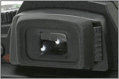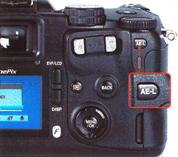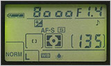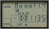 Example of a camera with a multi selector button (extreme right) to select the AF area spot. The selected area spot is indicated on the main LCD by a red bracket.