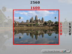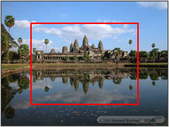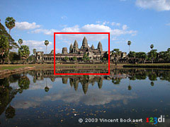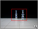 100mm tele has more narrow field of view (indicated in red in the wide angle image) |