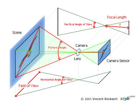 Wide angle lenses (short focal length) capture more because they have a wider picture angle, while tele lenses (long focal length) have a narrower picture angle. Below are some typical focal lengths: