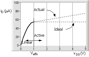 Level 1 SPICE also applies this channel-length reduction factor to the equation in the linear region, ( ). To match the linear-region equation to the active-region equation, ( ) becomes, at the edge of the active - linear regions,