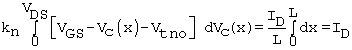 where the charge at the source is Qchan = Cox(VGS - Vtno), as in the case of (