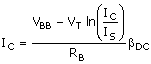 The equation set above has three unknowns, IC, IB, and VBE. The equations can be combined to obtain a function for IC,