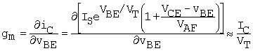 Differentiating (C.11) with respect to vBE (with vCE = VCE, Vce = 0), gm is found to be