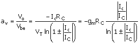 large-signal "gain" that includes nonlinearity of IC, VBE