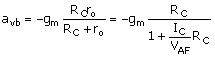 Base-to-collector gain expression that includes the output resistance of the transistor. |
