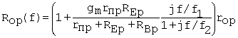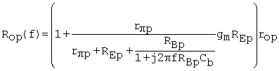 Frequency-dependent output resistance at the collector of pnp with REp |