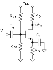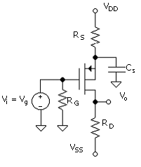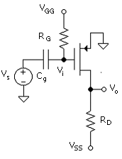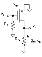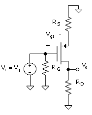 An applied input signal, Vi = Vg, divides between the gate - source terminals and the source resistor according to [(