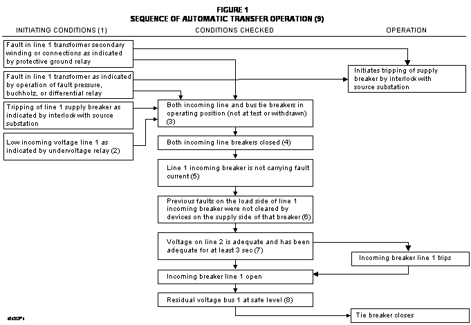 O 3.1 The control scheme shall provide automatic transfer of the supply to each bus from its incoming line to the other bus. The sequence of the automatic transfer operation shall be as shown in block diagram Figure 1.