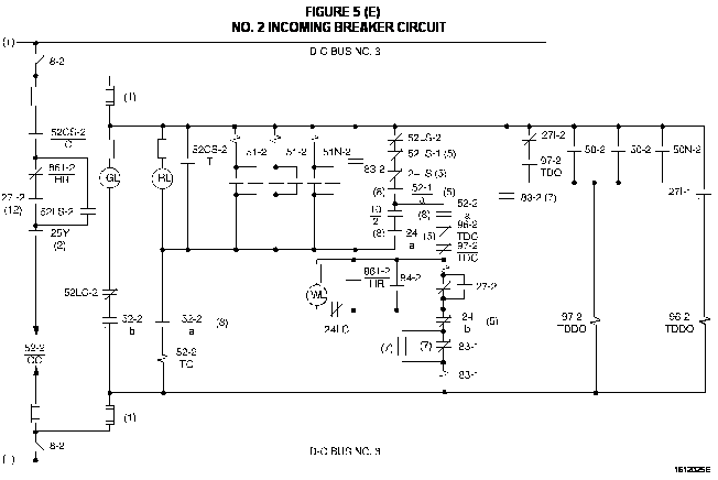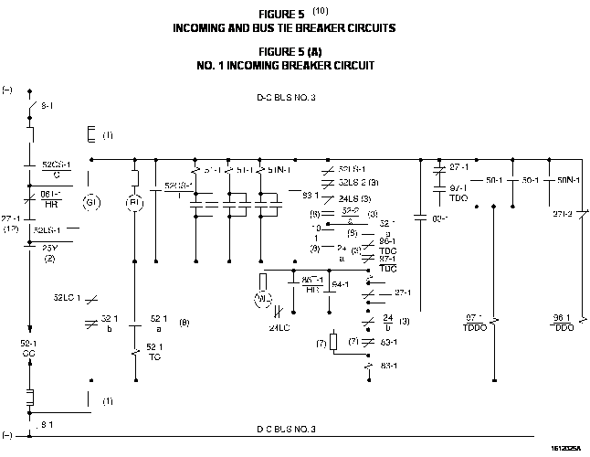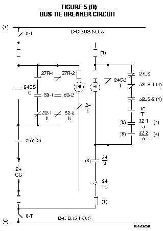 (5) Omit contacts 52LS-1 and 24LS at (5) if contact 52-1/a, 24/a, and 24/b at (5) are mounted on removable breaker elements and are disconnected when breakers 52-1 and 24 are at "test" position or are withdrawn. See Note 13.