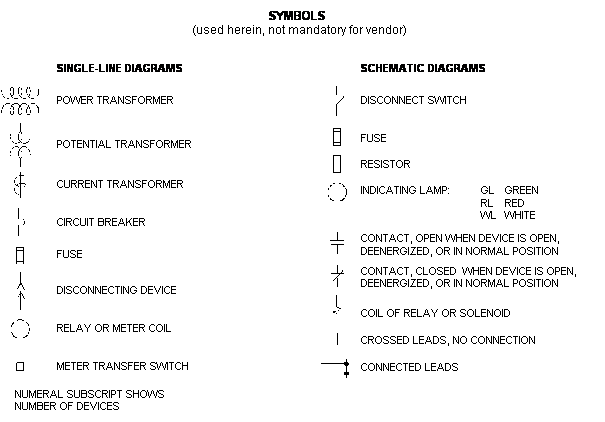 52LS, 24LS Contact closed or open, as shown, only when breaker indicated (by suffix 1: 52-1; by suffix 2: 52-2; by 24LS: 24) is in operating position. With the breaker at "test" or withdrawn, the contact opens if shown closed, or closes if shown open. It is preferred that contacts 52LS and 24LS consist of suitable connections to appropriate fingers of the secondary disconnect device; if this is not possible, limit switches responsive to breaker position are acceptable. If relays are used to multiply contacts, they shall indicate "breaker withdrawn" when de-energized, and be energized through switches "8" of breaker monitored.