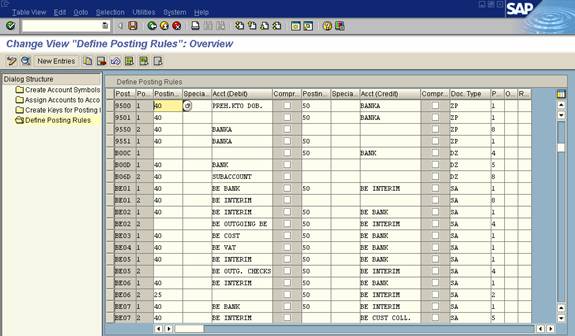 In this step you define posting rules for each posting transaction you defined for bank statement entry.