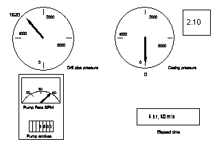 Panic! The vice-president for drilling and exploration is on the phone. He thinks you are all wrong. To prove the point, you stop the pump and close the well in. This is what you see.