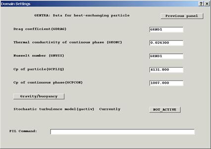 The approach of GENTRA is a different one: while the continuous phase is treated as above, the particles are represented by Lagrangian equations, which are integrated to yield the particle trajectory and the particle properties along this trajectory. This approach is based on the PSI-Cell method of Crowe, Sharma and Stock (1977).