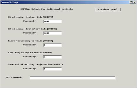The track unpacker assumes that the name of the global history file has not been changed from the default name ("ghis"). The single-character identifiers for the names of the individual history and trajectory files must now be specified. Typing "none" will deactivate the production of one or other (or both) of the file types.