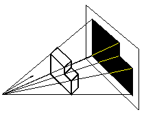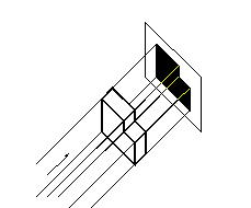The shape is best described through projection, a procedure of getting an image by rays of observation or of sight. The rays are sent in a certain direction, from the object to be projected, to the projection plane. The direction of the rays can be parallel (when the observer is located at an infinite distance from the object), or conic (if the distance is a finite one), leading to get parallel projections, or central (perspective)projections (Fig. 1.4 - a and b).