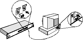 2. Using the RJ-45 plug and twisted-pair cable, connect the network interface card to a 10BASE-T or 100BASE-TX hub (concentrator). Note that the maximum cable length between a hub and any computer is 100 meters (328 feet).
