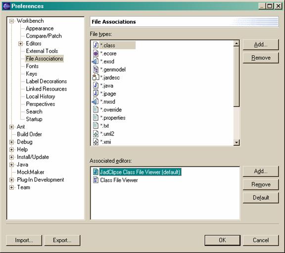 JAD stands for Java Decompiler. It can decompile Java class files into a java source files. Jad.exe is located in k:\dev soft\eclipse2.1\plugins. Please copy it into any folder on your hard drive.