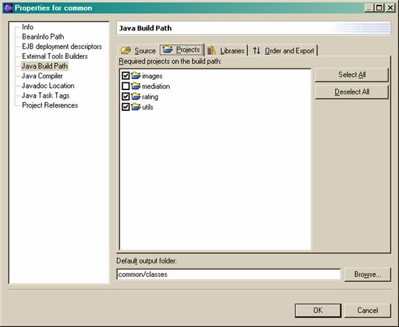 In addition, you can "export" imported projects and resources to dependant projects, by selecting the checkmark near the project/resource name. For example: If project Common exports Images, Utils and Rating, then project Mediation, which imports project Common, can import project Common only, and not Common, Images, Utils and Rating all together.