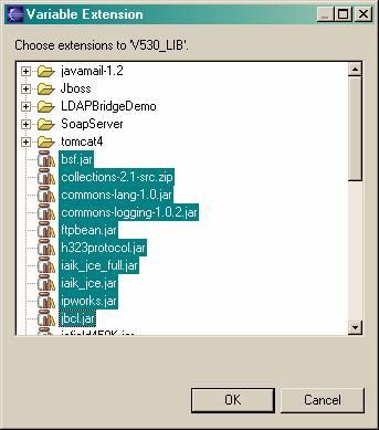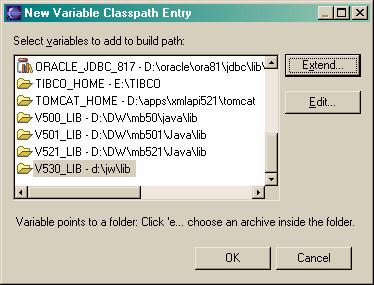 If you want to add JAR(s) relative to classpath variable, use 'Add Variable' button. If your variable points to a folder (like in case with V5xx_LIB variables), you can click on 'Extend' button to multi-select all the JARs under the given folder.