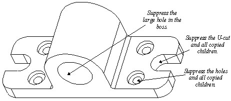 Suppressing features temporarily removes them from the regeneration sequence. This not only simplifies the way the part looks, but also decreases the amount of time it takes to regenerate the part.