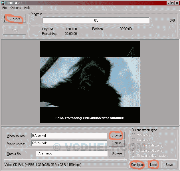 And now it's just to select VCD Templates or SVCD Template and Encode, read