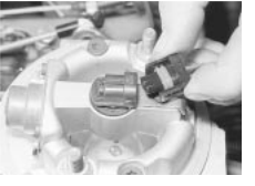 adjuster and the knock sensor. Disconnect the multiplugs from these components and feed the wiring harness back through the manifold.