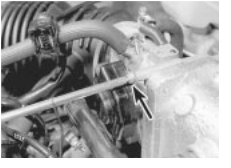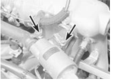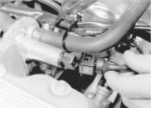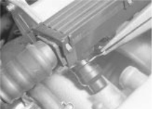 6 Release the cable tie which secures the coolant hoses to the right-hand side of the manifold.