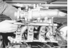 0 Unscrew the nuts which secure the inlet manifold to the cylinder head. The lower nuts are different to reach: a small socket or ring spanner will be needed.