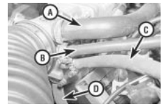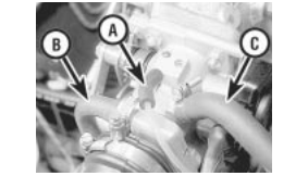 13.4 Distributor vacuum hose (A), coolant hose (B) and breather (C) on throttle housing