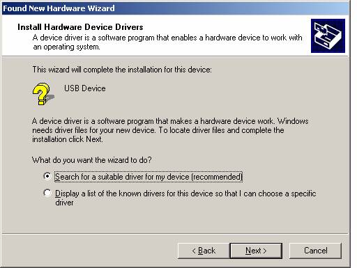 Windows 2000 should launch a splash which indicates that a new USB device is found.