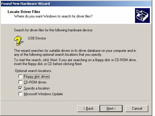 Check "Specify a location" and press Next.