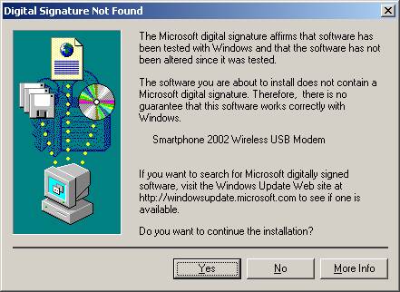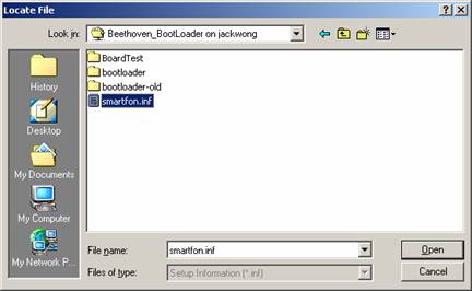 Browse and select smartfon.inf from where you saved the file on your hard drive to install Smartphone 2002 Wireless Modem driver.