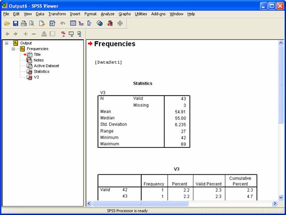 Make a frequency distribution, or histogram, of the interval data as follows: When you are in the Frequencies window, click on Charts and then select Histogram. When you examine the output viewer, be sure to paste the histogram (right click on the histogram and copy it) into your Word document.