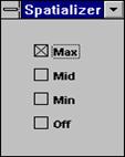 Controls the amount of spatialization from off to minimum level to mid level to maximum level.
