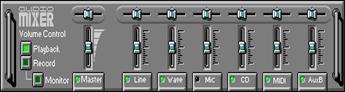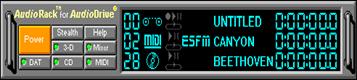 The AudioRack32 allows you to take advantage of your computer's audio capabilities with the convenience of the controls all being in one place. You can play audio CDs, wave files (in .WAV and .AUD formats), and MIDI files. With the multi-source mixer, you can blend these sources with line in and microphone sources in any way you choose. Then you can record these creations as wave files and edit them with the Audio Recorder.