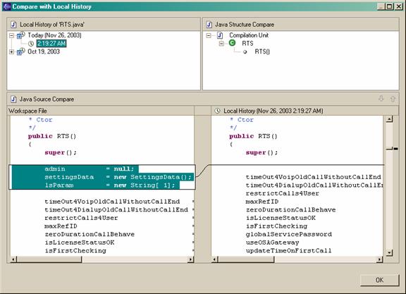 Saves a local file change history on your computer. By defaults, all changes are saved for 7 days. You can compare file and see changes in SourceSafe-like way, using local history popup menu. Very useful in case you've lost/overwritten your source files 5 minutes before the check-in time.