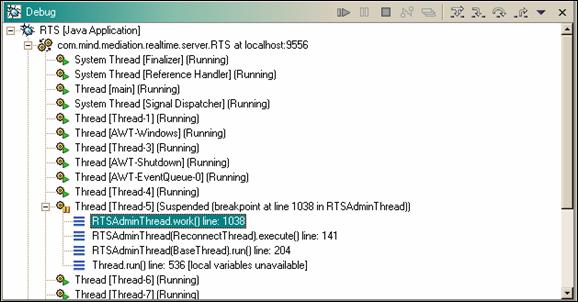 Suspend VM policy - on breakpoint hit, suspend only current thread or the whole VM (all threads). Very useful when debugging a multi-threaded application, and having a breakpoint in a class with more than one thread instances running. For example, if you have 'suspend VM' defined on breakpoint in RTSRequestHandler, the first breakpoint hit will suspend the whole program, and wont cause all the RTSRequestHandlers to fall on this breakpoint.