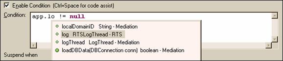 Breakpoint condition. Here you can write code, a Java boolean expression which will enable or disable this breakpoint. Code completion is supported.