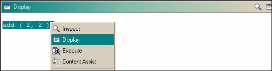 Display view allows you to write portions of Java code in the middle of your program execution. Everything you write and select to execute (rightclick menu), will affect your program. You can write any Java code in display window, from simple variable assignments, to creating new classes, instances, etc.