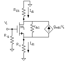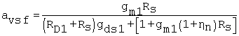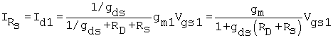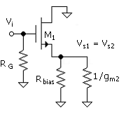 The transconductance relation obtained for the common-source stage given by ( ) also applies to the source-follower stage. Combining this with Vs1 = Id1Rs leads to the source-follower gain associated with M1, which is