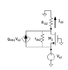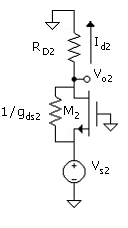 Common-gate gain Vd2/Vs2 = Vo2/Vs2 of M2, including body effect. |