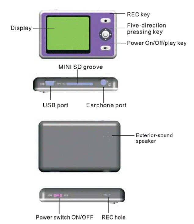 l MPEG-4 video format play, full-screen play display, exterior-sound speaker play.