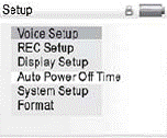 In main interface, push leftwards or rightwards to select [Setup] option, short press [MENU] key to enter Setting interface, and select the sub-option to be set by pushing upwards or downwards the Five-direction key.