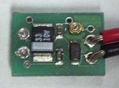 The 33uF polarized capacitor used in the prototype circuit was a conventional thru-hole electrolytic type. However, because of the large size of this type of capacitor, the surface mount design required a much smaller type of polarized capacitor. Therefore, a smaller Tantalum Electrolytic Chip Capacitor was implemented in the PCB circuit. Luckily, this capacitor came in a standard package that was already included as a library in the layout software.