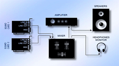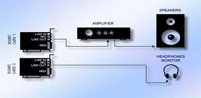 Up to 4 sound cards with switch "on the fly" and monitoring